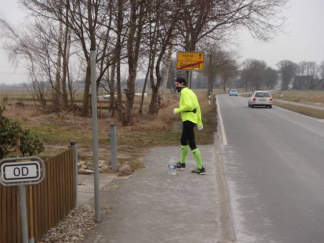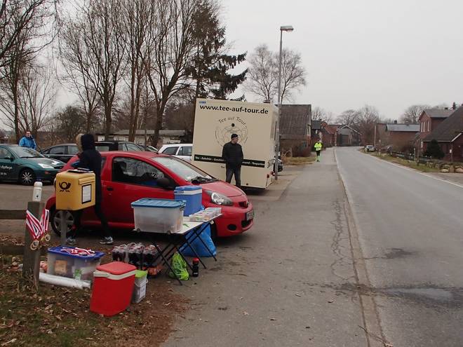 Runde 8 11.42 Uhr / Km 16,6 Zuschauer hatte wir zwar keine, dafür hatten wir hier Ablenkung durch eine Boßel-Tour. |