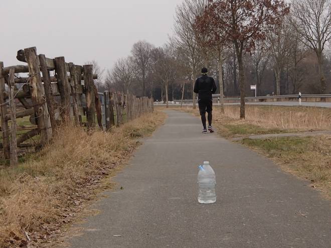 Runde 17 13.28 Uhr / Km 34,3 Bisher hatte noch keiner die als Wendemarke genutzte Wasserflasche über den Haufen gerannt. |