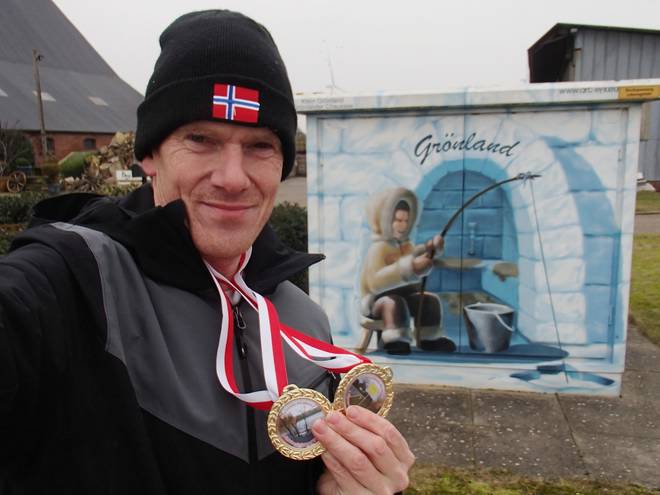 Grönland 15.03 Uhr Rolf wurde noch die Ehre zu Teil, die Medaillen von der Bürgermeisterin persönlich umgehängt zu bekommen. |