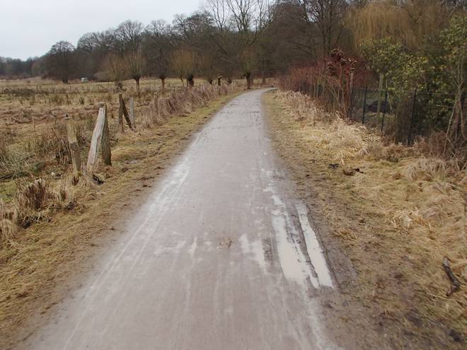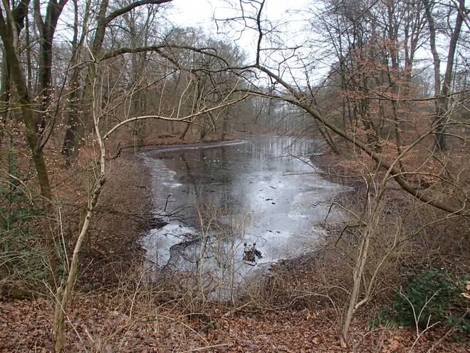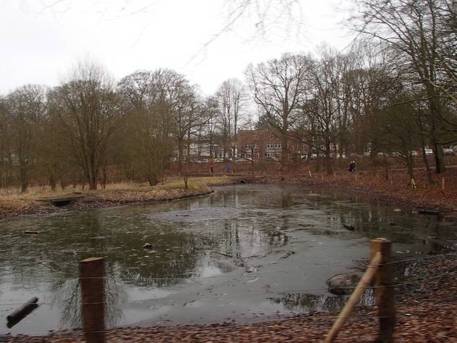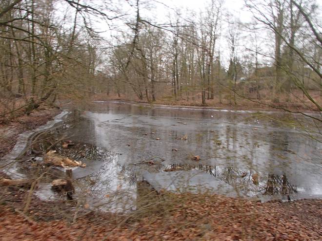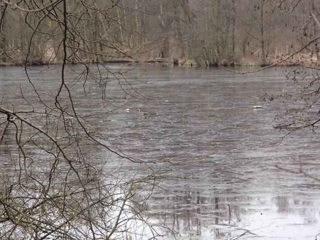 Volksdorfer Teichwiesen 8.24 Uhr Zudem war es in den Vortagen noch sehr kalt gewesen. So konnte man drei Tage zuvor noch prima auf dem See Schlittschuh laufen. |
