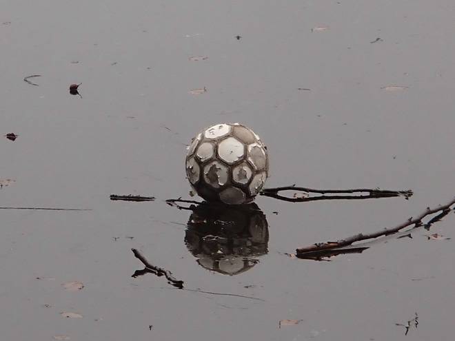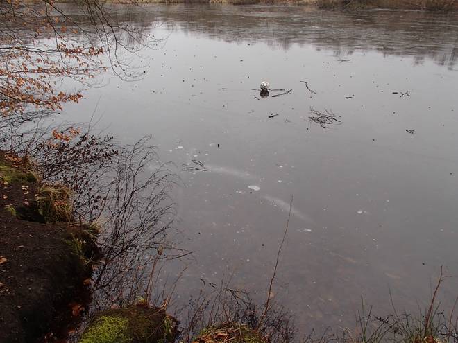 Volksdorfer Teichwiesen 8.24 Uhr Inzwischen trug das immer noch vorhandene Eis gerade noch einen Fußball. |