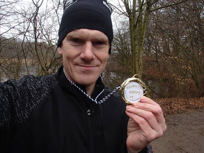 Volksdorfer Teichwiesen 9.10 Uhr ... gab es noch eine schöne Extra-Gebutstagsmedaille. (Foto: Christian) |