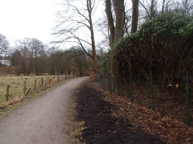 Runde 1 9.36 Uhr / Km 2,5 Der Renaturalisierung-Wahn hatte auch die Teichwiesen erreicht. Wie auch entlang vieler anderer Laufwege wurde einfach alles abgeholzt. Übrig blieben dann meist solche Vegetations-Wüsten, wo früher mal blühendes Leben war. |