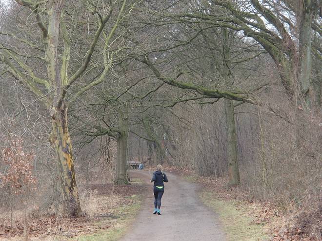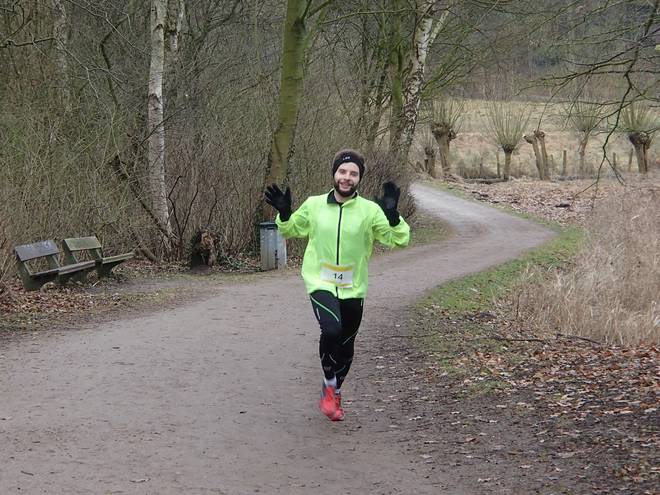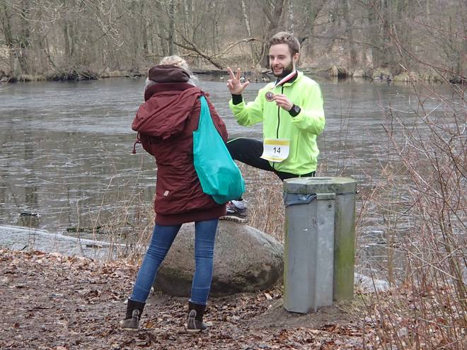 Volksdorfer Teichwiesen 14.16 Uhr So ein wenig Aufwärmen war gar nicht verkehrt. Während des Laufes war mir nicht kalt gewesen, aber nun nach dem Lauf kühlte ich doch schnell durch. |