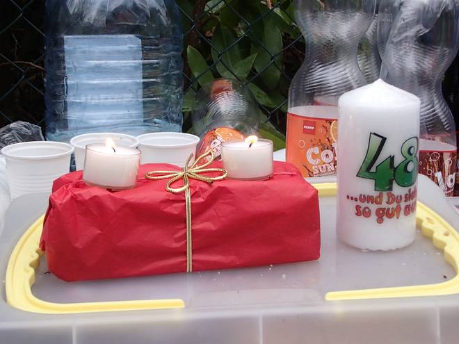 Volksdorfer Teichwiesen 9.09 Uhr Meine Geburtstagskerze durfte nicht fehlen. |