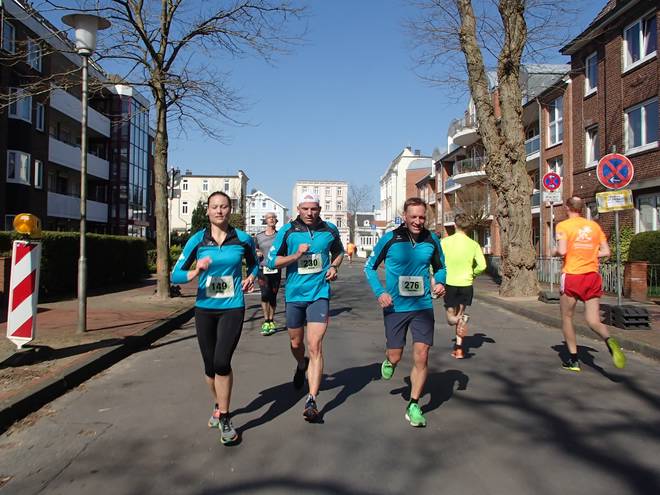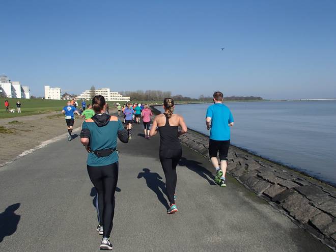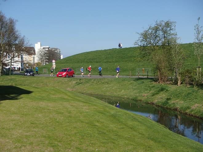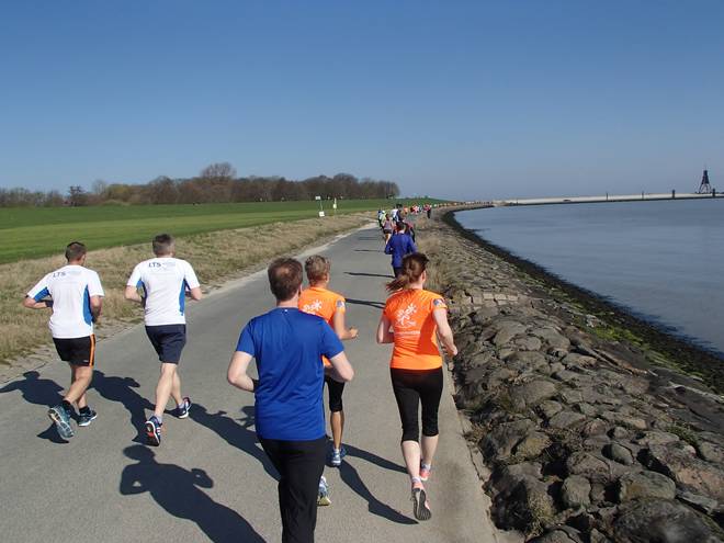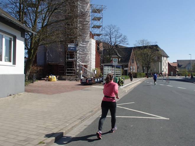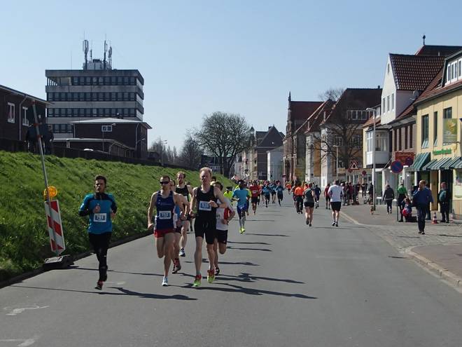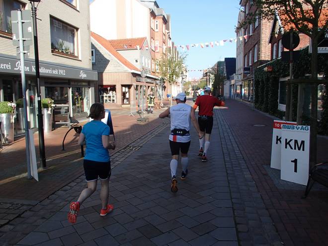 Deichstraße Runde 1 9.31 Uhr / Km 0,1 An der Strecke hatte sich nichts geändert. Es waren vier Runden zu laufen. |