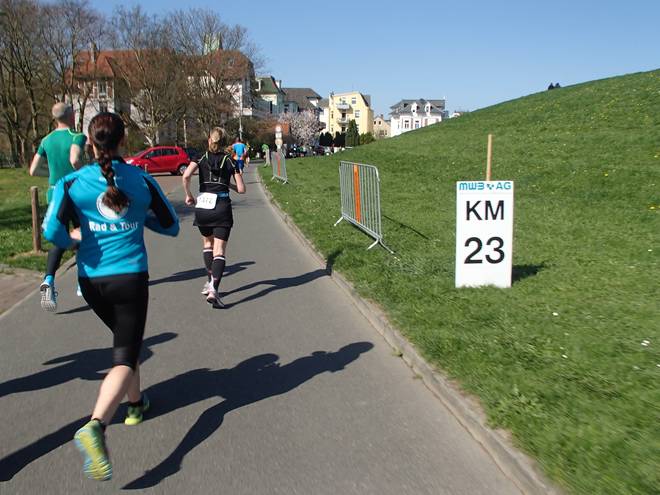 Deichstraße Runde 3 11.31 Uhr / Km 21,5 Auf ging es in die dritte von vier Runden. |