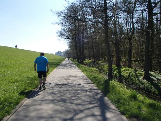 Deichstraße Runde 4 12.41 Uhr / Km 32,4 Die letzte Runde startete ich vornehmlich wandernd. Ich hatte auch nicht sehr viel Lust, mich nun mit aller Kraft noch zum Laufen zu bringen. |