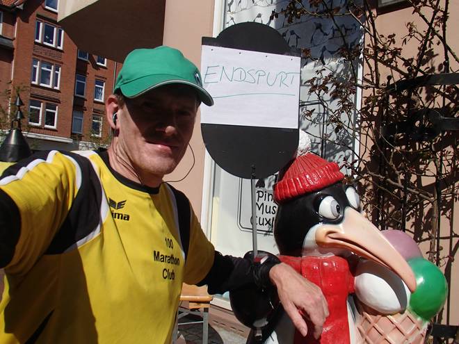 Kaemmererplatz Deichstraße 13.58 Uhr 4:19:57 Stunden war am Ende meine Zeit. Die 4:20 Stunden mit Glück noch unterboten. Immerhin. Die finalen 2,195 Kilometer war ich in 13:12 Minuten gelaufen. 6:00 Min/Km genau. Ein Schlußsprint ist etwas anderes. |