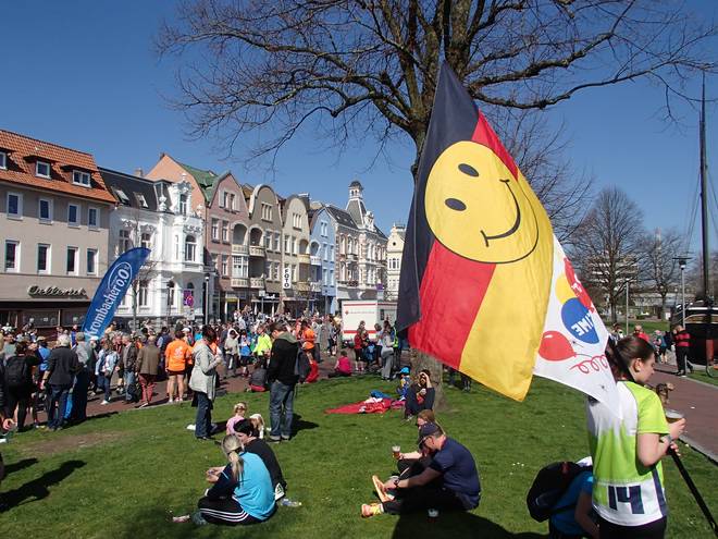 Kaemmererplatz 9.19 Uhr Welch außergewöhnlicher Tag in Cuxhaven. Sonne und fast kein Wind. So etwas gab es ja noch nie. Zumindest nicht beim Marathon. |