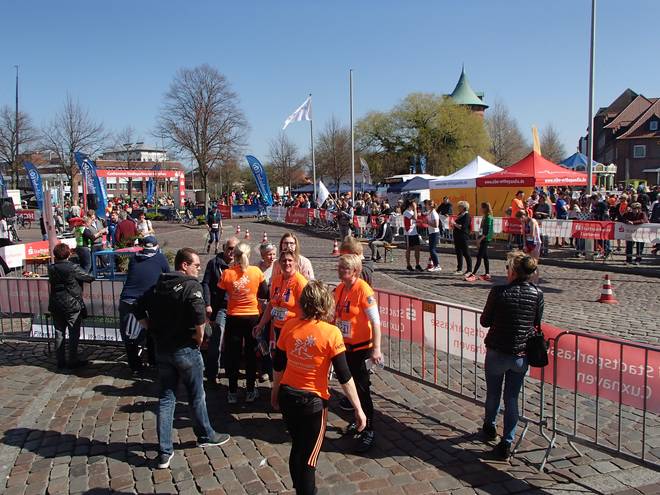 Deichstraße Kaemmererplatz Runde 1 10.28 Uhr / Km 10,2 Die 269 Halbmarathon-Läufer standen schon bereits, als ich erstmals wieder bei Start und Ziel vorbeikam. |