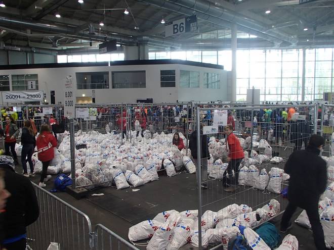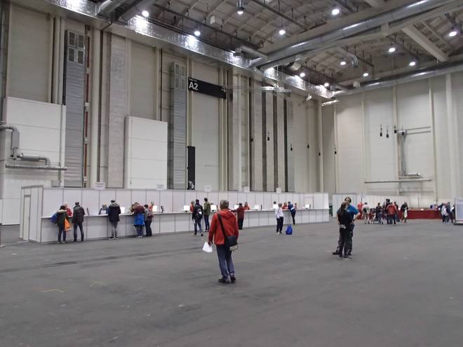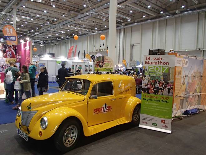 Hamburg Messe 12.32 Uhr Zudem hatte ich auch noch nie meine Startunterlagen in der (verlängerten) Mittagspause abgeholt. Das hatte den Vorteil, daß ich ziemlich viel Platz hatte. |