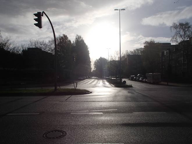 Sydneystraße Hindenburgstraße 7.35 Uhr Renntag. Endlich. Und der Morgen begrüßte mich sogar noch mit Sonne. |