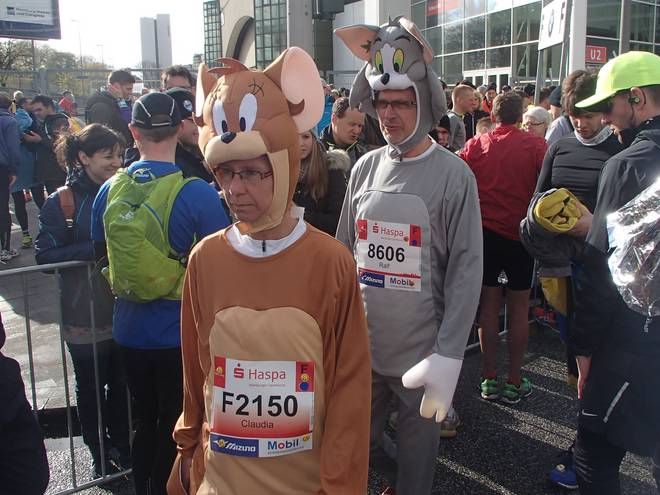 Karolinenstraße 8.52 Uhr Tom und Jerry sehen beide gar nicht glücklich aus. Das Jagd-Duell gewann später (wie meist auch in den Filmen), die Maus. Mit 5:03:33 gegen 5:03:34 Stunden aber nur knapp. |
