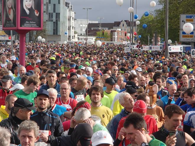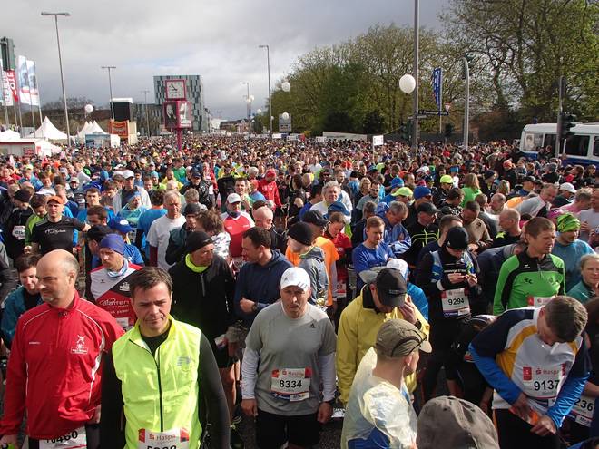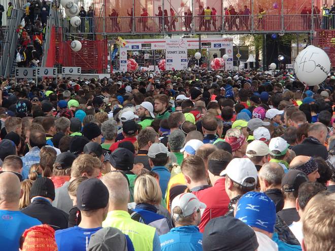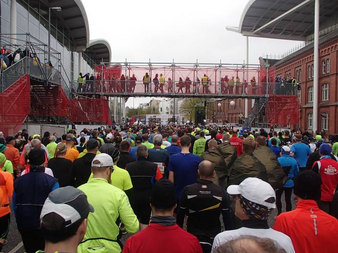 Karolinenstraße 8.51 Uhr Neun Minuten vor dem Start war ich in meinem Startblock angekommen. Nach C (2015) und E (2016) stand ich nun in Block F. Ich hätte zwar auch einen Platz weiter vorne haben können (die schnellen Qualifikationszeiten aus 2015 waren noch gültig), aber das hätte nicht meinem aktuellen Leistungsstand entsprochen. |