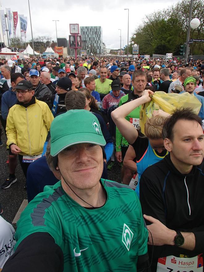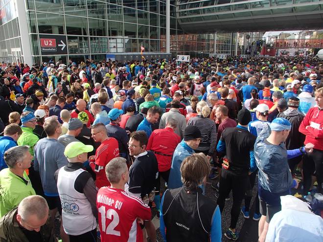 Hamburg Messe 14.13 Uhr Diese besondere Nervosität kenne ich allerdings nur vor dem Hamburg-Marathon. Andere Läufe sehe ich immer viel lockerer. |