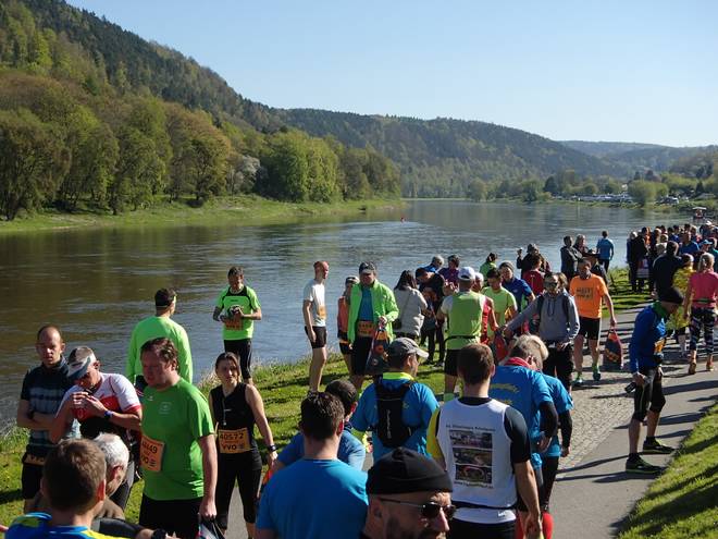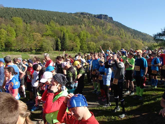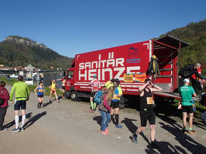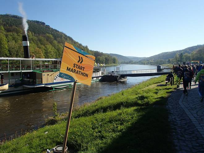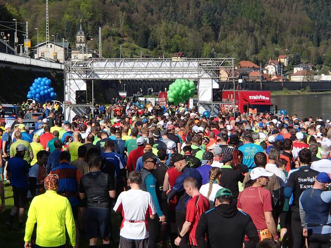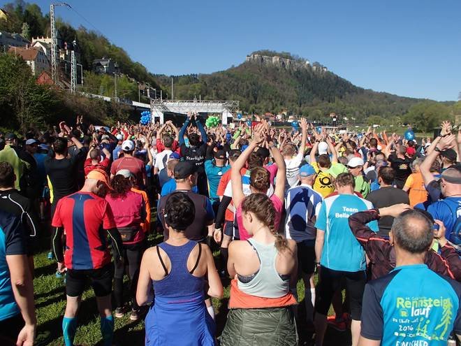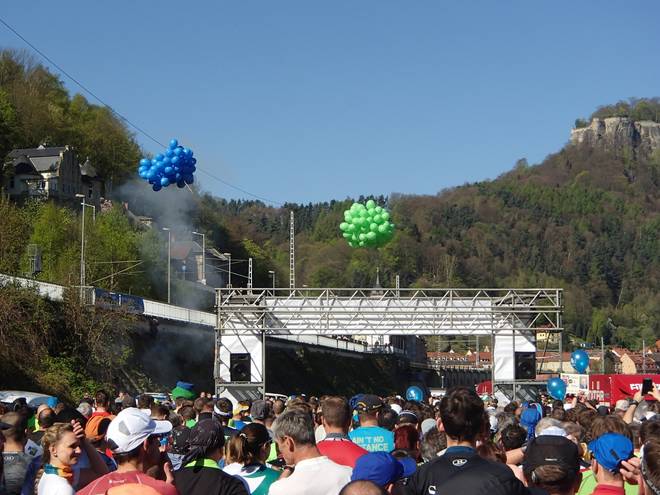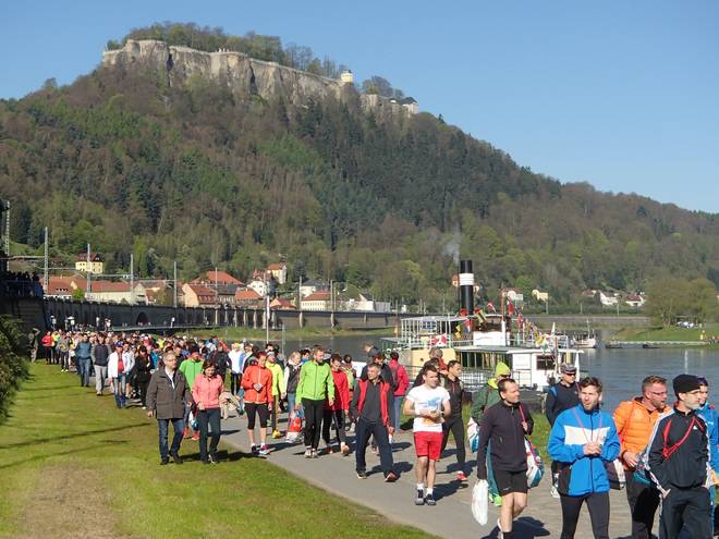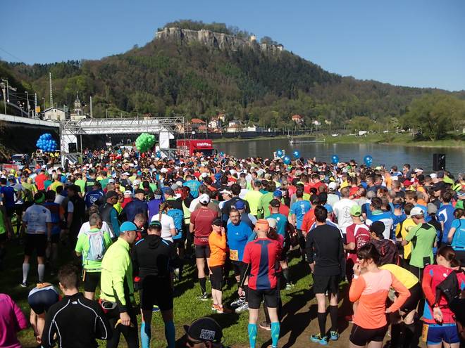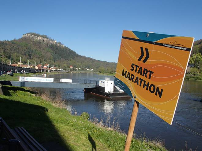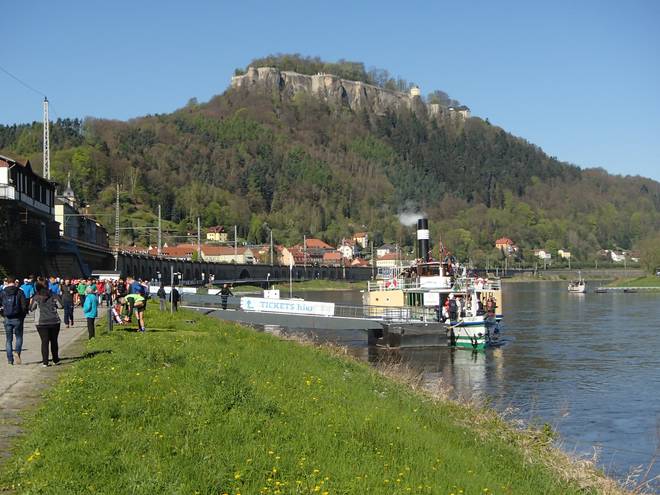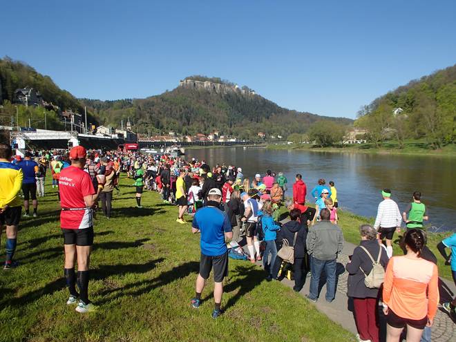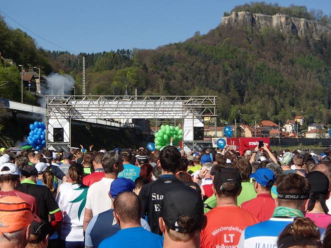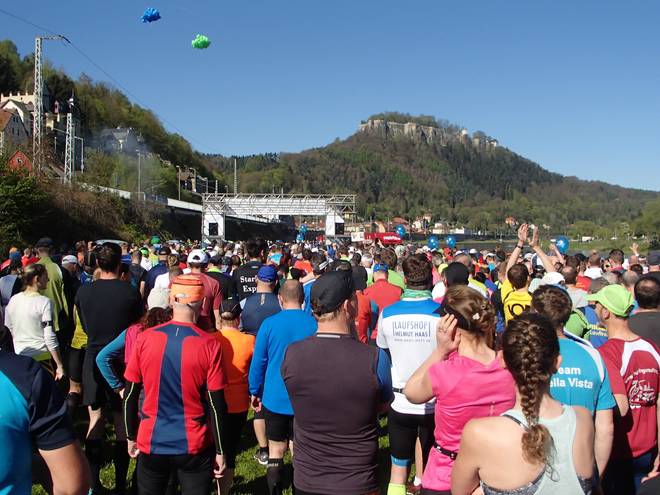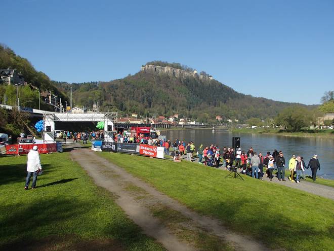 Elbstraße 8.44 Uhr Mit der Elbe und der Festung Königstein im Hintergrund wanderte das Feld Richtug Start. |