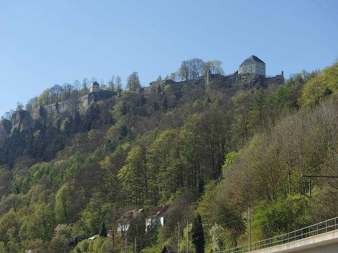 Elbweg Königstein 9.40 Uhr / Km 2,2 Noch ein letzter Blick zurück auf die Festung Königstein. |