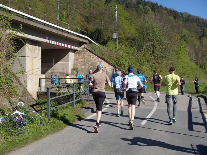 Elbweg Königstein 9.40 Uhr / Km 2,3 ... liefen wir nach links unter dem Bahndamm durch. |