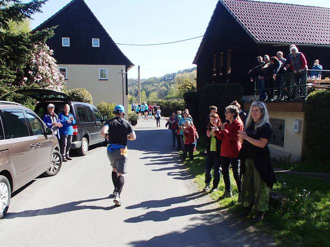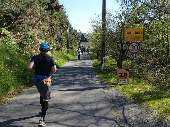 Elbweg Kurort Rathen 9.53 Uhr / Km 4,3 In Kurort Rathen standen dann schon ein paar mehr Zuschauer an der Strecke. |