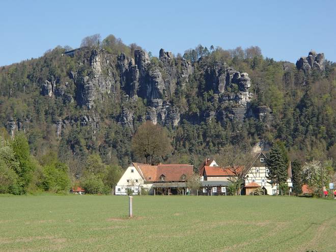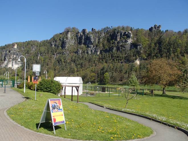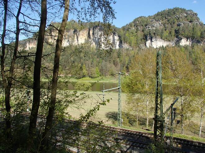 Elbweg Kurort Rathen 10.04 Uhr / Km 5,9 Da gibt es auch die schöne Burg Altrathen (mittlerweile eine Pension) und den Start zur Bastei-Wanderung und vielen anderen Touren durch das Elbsandsteingebirge. |