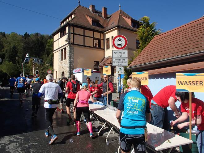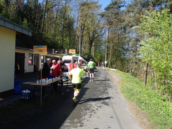 Pötzschaer Weg Kurort Rathen 10.07 Uhr / Km 6,3 Insgesamt gab es drei reine Wasserstellen und sieben Verpflegungsstellen auf dem Kurs. |