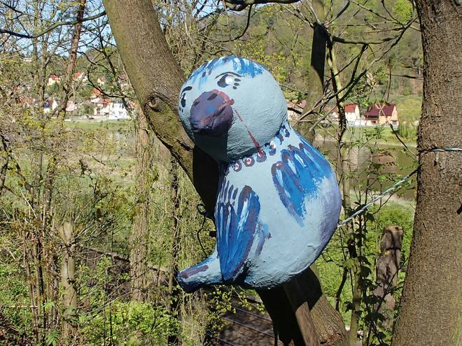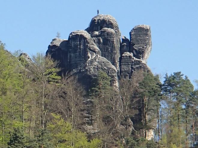 Pötzschaer Weg Kurort Rathen 10.08 Uhr / Km 6,4 Was auch immer da oben steht, es ich kein Mensch. |