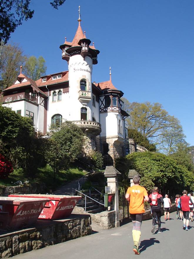 Obervogelgesanger Weg Stadt Wehlen / Pötzscha 10.30 Uhr / Km 9,9 Den Ort könnte man sich mit mehr Zeit auch mal angucken. Während des Marathons hatte ich dafür aber keine Zeit. Außerdem warteten noch mehr Ort darauf, durchlaufen zu werden. Nicht guter Letzt dann Dresden. |