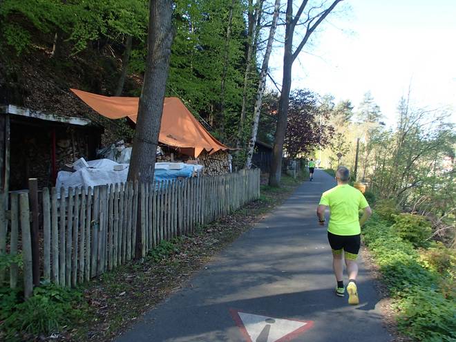 Rathener Weg 10.20 Uhr / Km 8,3 Wenn ich wie hier denn auch mal zum Laufen kam, dann lief es recht gut. |