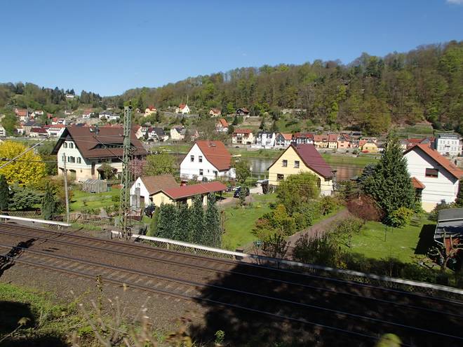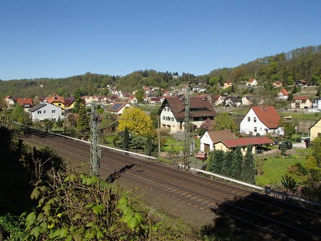 Obervogelgesanger Weg Stadt Wehlen / Pötzscha 10.28 Uhr / Km 9,6 Einmal der Bahnhof mit Zug... |