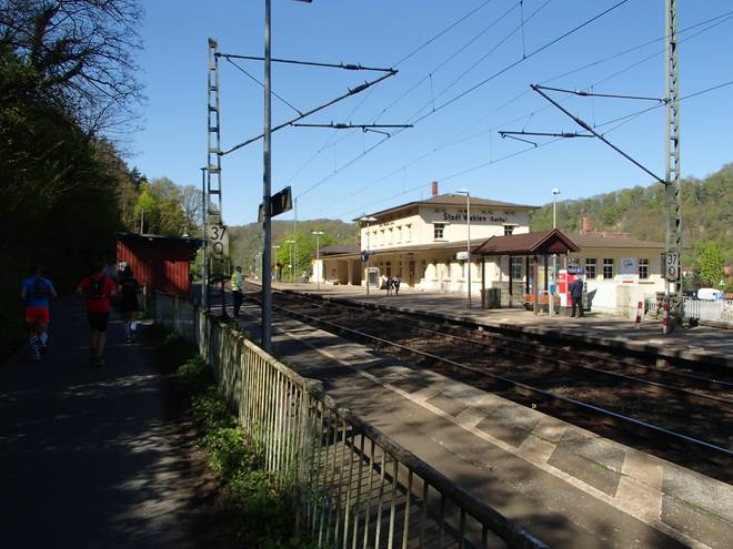 Elbweg Kurort Rathen 10.06 Uhr / Km 6,2 Der erste Verpflegungsstand dann genau am Bahnhof von Kurort Rathen, |