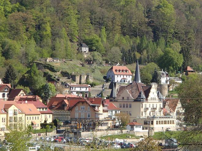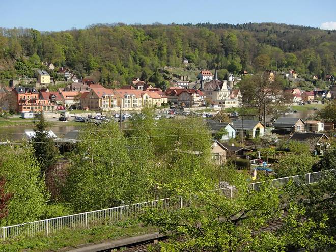Rathener Weg Stadt Wehlen / Pötzscha 10.25 Uhr / Km 9,1 Blick über die Stadt und die Elbe. |