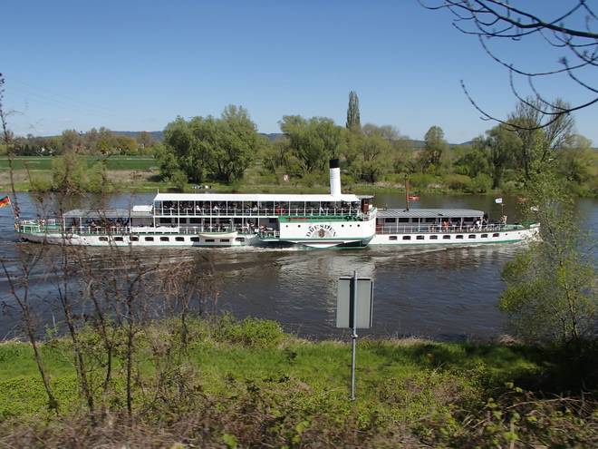 Blasewitz 12.58 Uhr / Km 33,8 Die Schiffe der älteren Bauart gefallen mir irgendwie besser. |