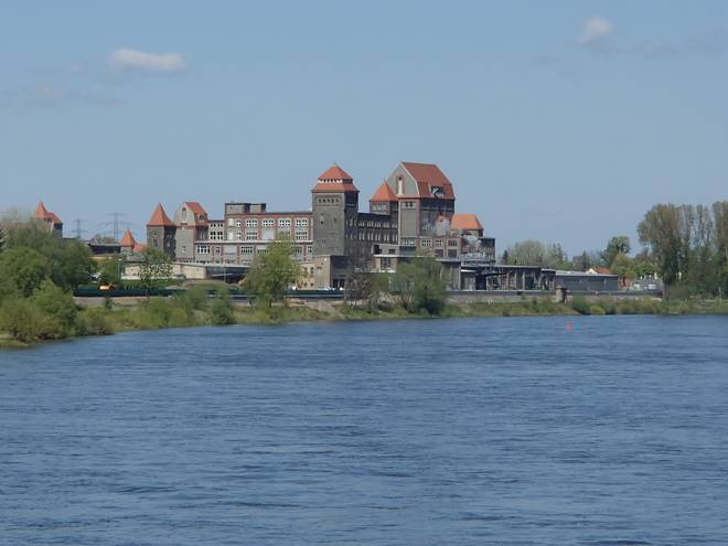 Elbradweg Heidenau 11.45 Uhr / Km 21,9 Blick über die Elbe auf die Glatfelter Dresden GmbH. |