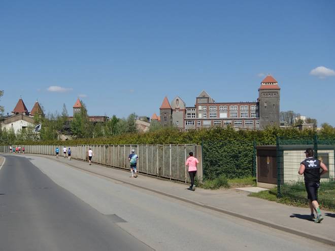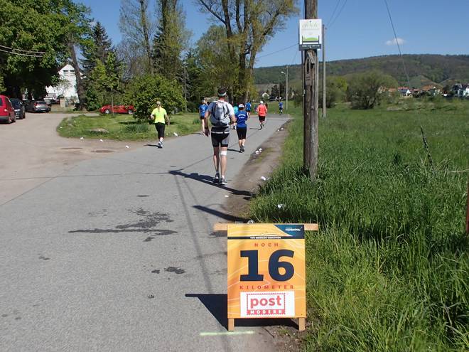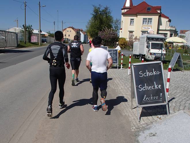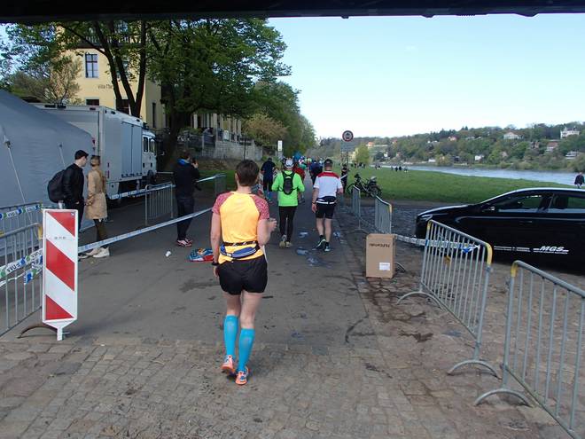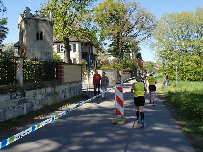 Tolkewitz/Laubegast 12.51 Uhr / Km 32,5 Trotz des sehr komfortablen Vorsprungs auf die 4:30er-Endzeit lief die zugehörige Zeitgruppe nur kurz hinter mir. |