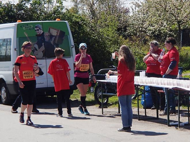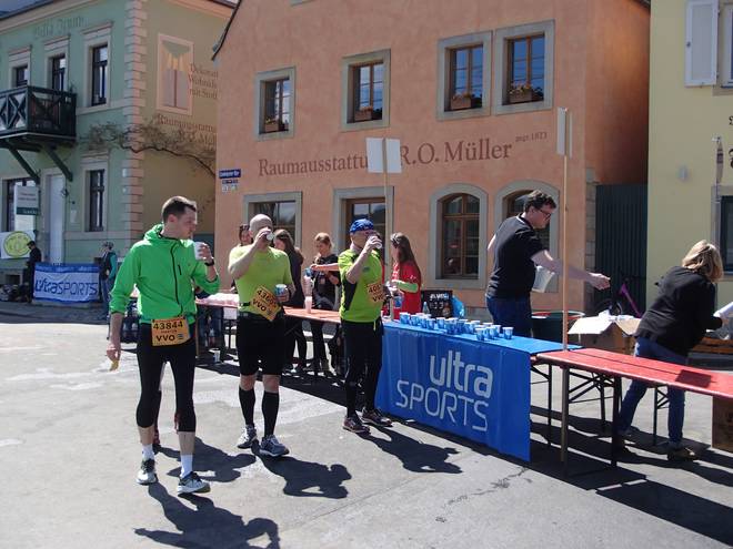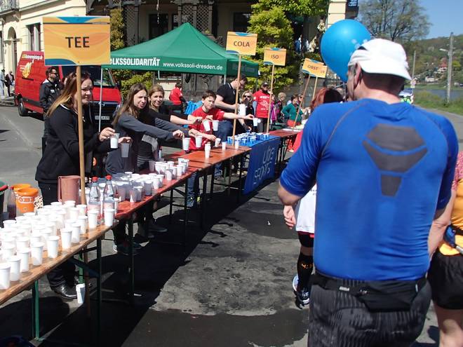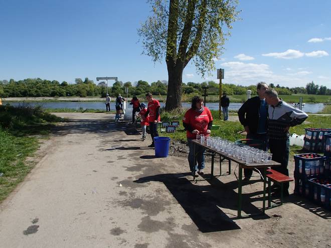 Laubegaster Ufer 12.40 Uhr / Km 30,8 Und gleich danach der nächste Verpflegungsstand. Hier gab es zu Wasser, Tee, Iso und Obst nun auch Cola. Yummmm!!! |