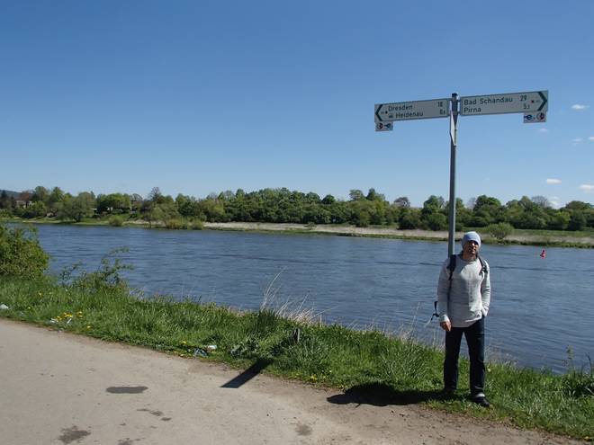Pirnaer Straße Elbradweg Heidenau 11.45 Uhr / Km 21,9 Und schon waren wir wieder zurück an der Elbe. |