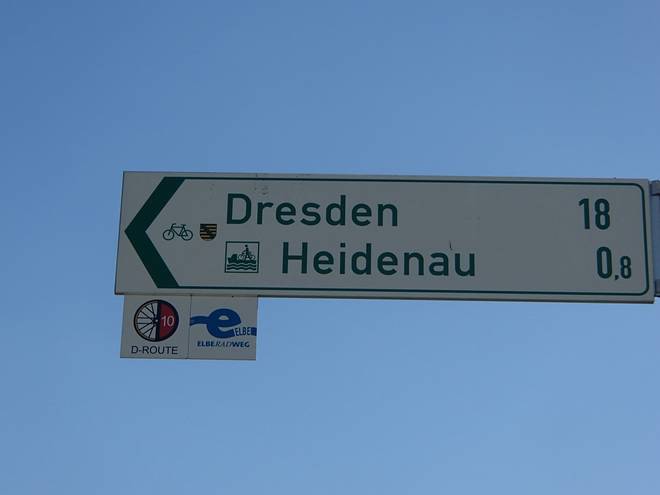Elbradweg Heidenau 11.58 Uhr / Km 24,0 Ein paar Meter mehr oder weniger oder falsche Ziffern auf dem Schild. Egal. |