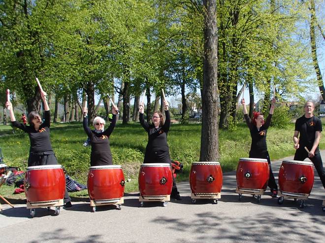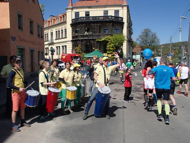 Elbradweg 12.02 Uhr / Km 24,7 Die Trommel-Gruppe heißt Hikari Daiko und kommt aus Heidenau. |