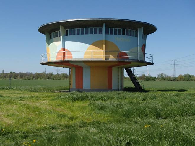 Zschieren 12.05 Uhr / Km 25,2 Was immer das sein soll. Wenn es sonst wenig zu sehen gibt, wir auch das zum Hingucker. |