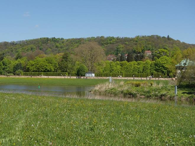 Zschierener Elbstraße 12.27 Uhr / Km 28,5 Kurz vor dem Fährhaus Kleinzschachwitz. Von dort kann man mit der Fähre zum Schloß Pillnitz übersetzen. |