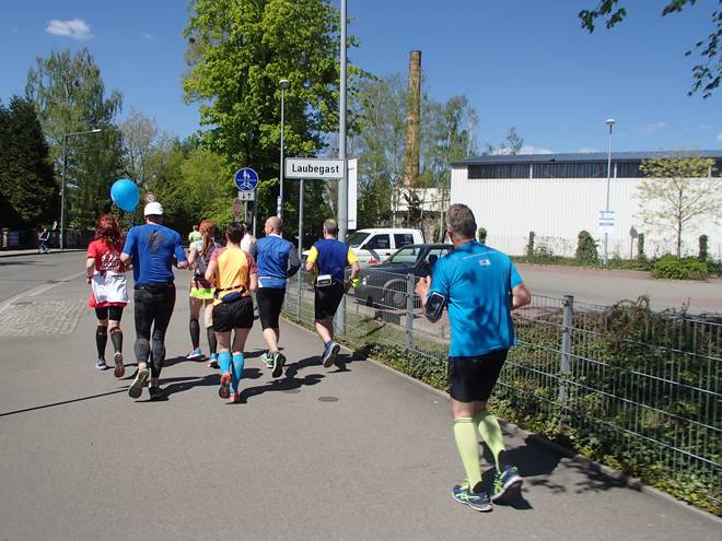 Laubegaster Ufer 12.37 Uhr / Km 30,4 Ich blieb nun erst einmal in der Nähe der Ballon-Läuferin. |