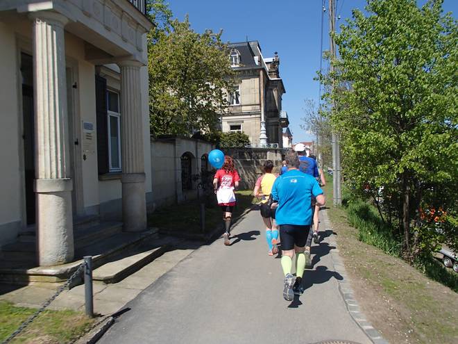 Blasewitz 13.03 Uhr / Km 34,6 Ich blieb hinter dem Ballon. Durch die Foto-Pausen wäre ich vermutlich ohnehin immer wieder überholt worden. |