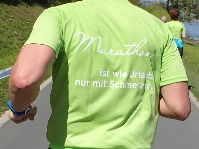 Blasewitz 12.57 Uhr / Km 33,7 Marathon ist wie Urlaub, nur mit Schmerzen? Das klingt so als wäre Urlaub besser als Marathon. Ziemlicher Unsinn. |
