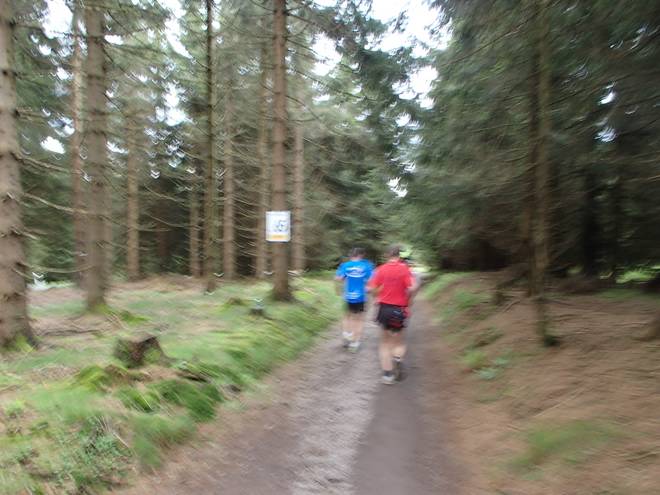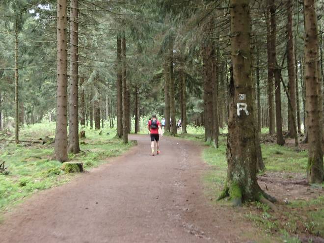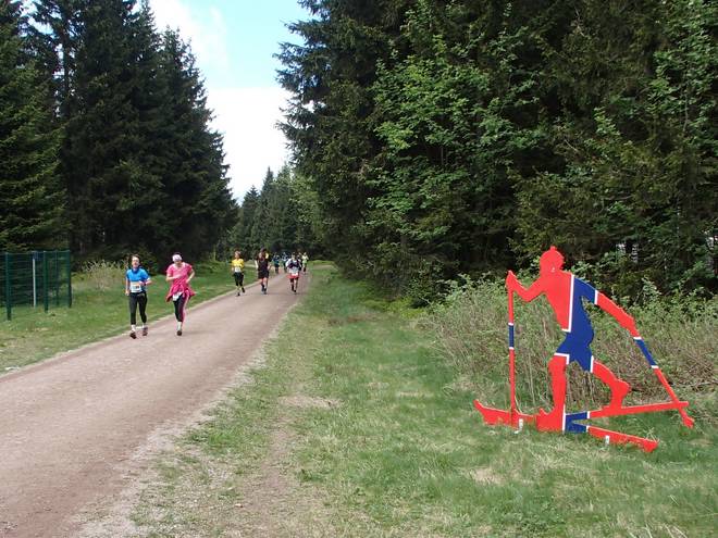 12.48 Uhr / Km 56,0 Neben dem Rennsteig für Wanderer gibt es auch einen für Radfahrer und Skifahrer. Wir wechselten die immer hin und her, da nicht jeder Teil des Wanderweges für so viele Läufer ausgelegt ist. |