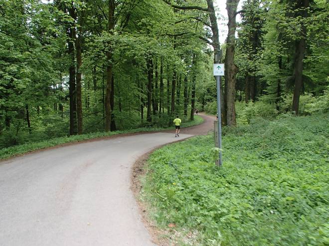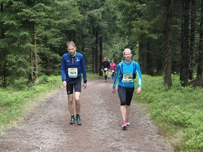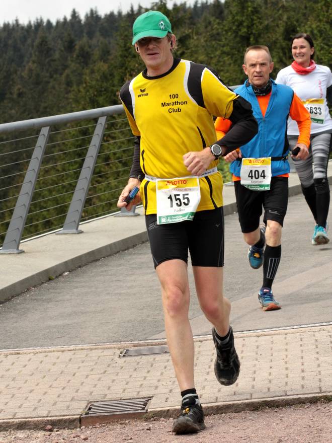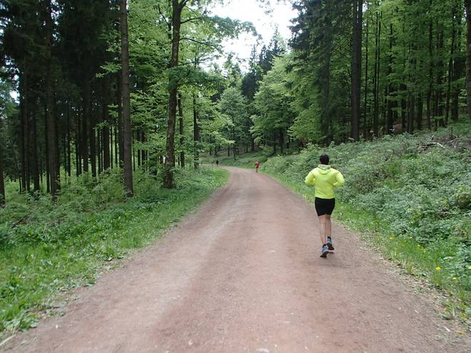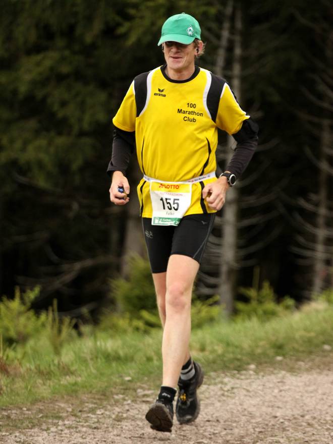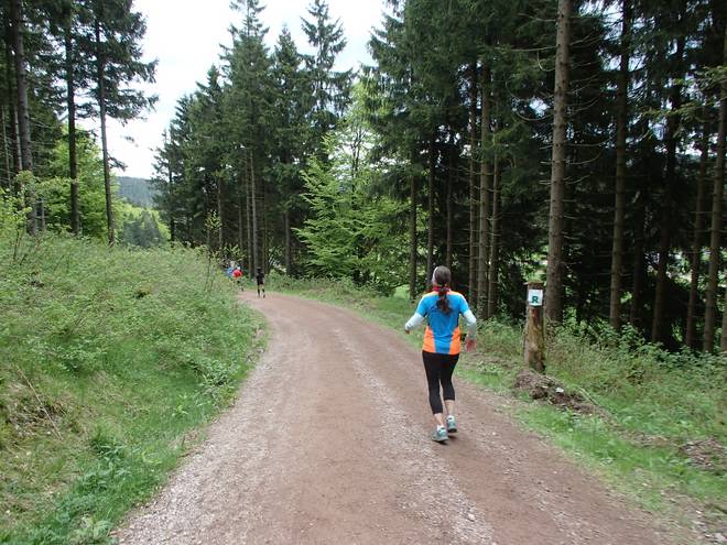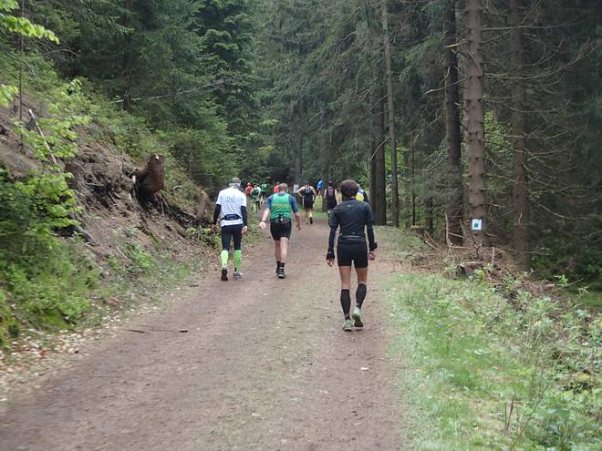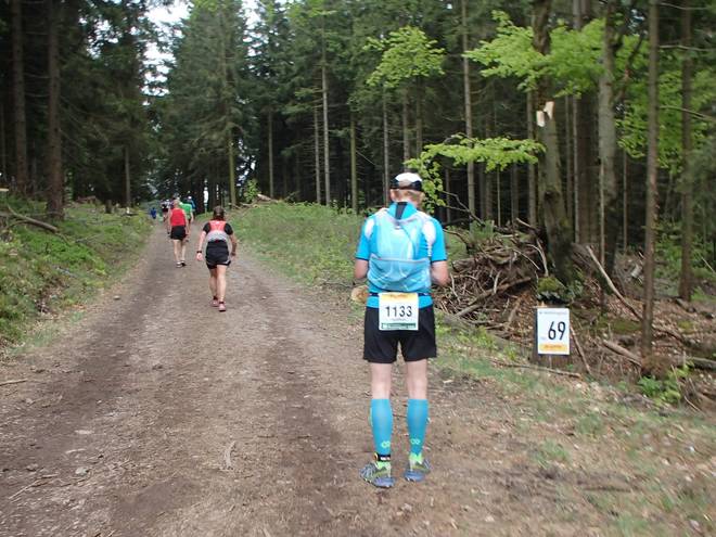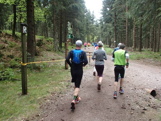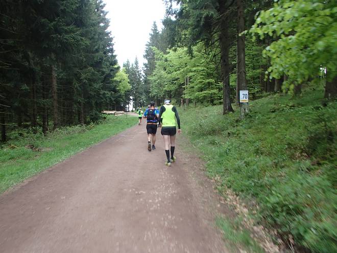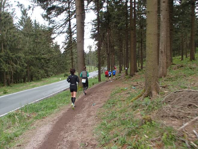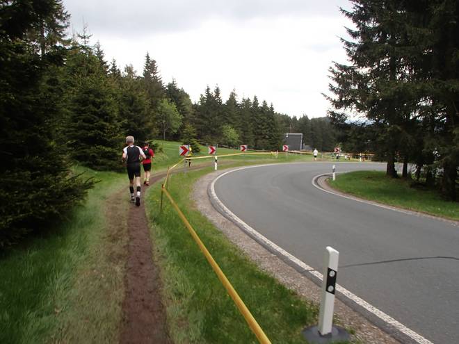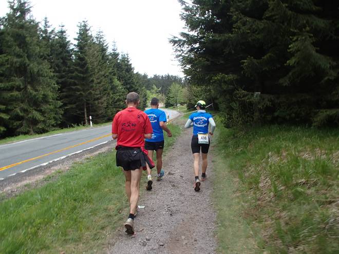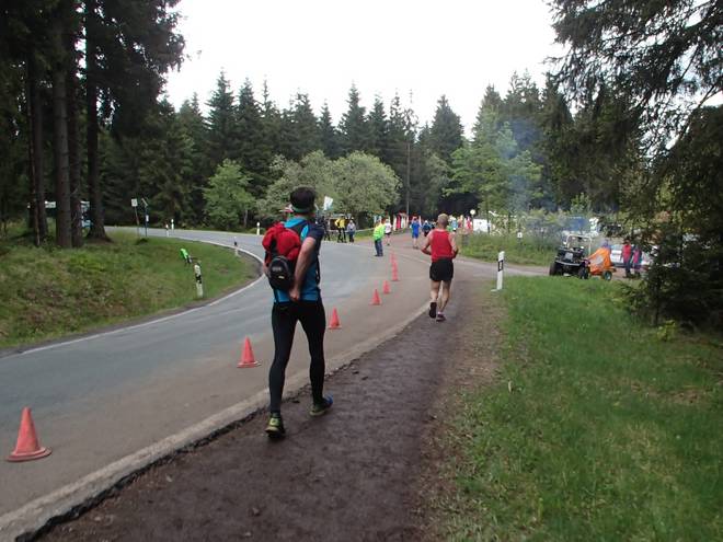 13.43 Uhr / Km 63,8 Vor allen nicht, weil ich nun wieder ständig überholt wurde. Von allen, die ich am Anstieg zum Großen Beerberg noch überholt hatte. |
