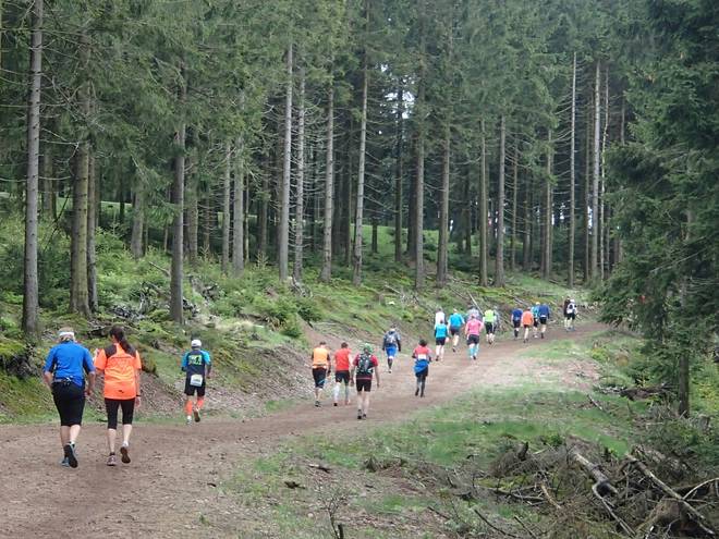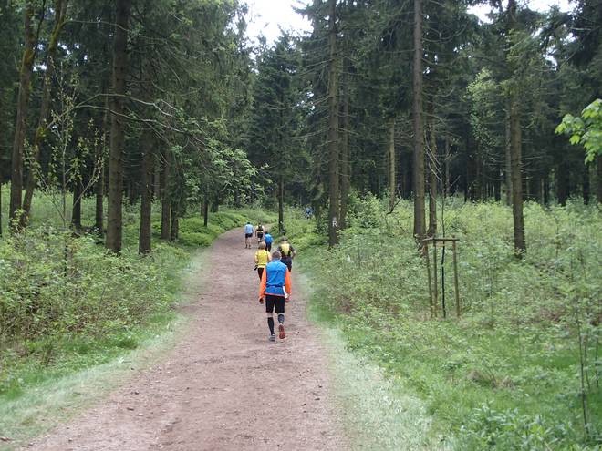 13.28 Uhr / Km 61,7 Nun ging es an die letzten großen Anstieg. Den hinaus zum Großen Beerberg. |