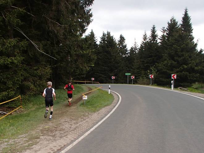 Schmiedefeld 14.35 Uhr / Km 72,0 Selbst den letzten gut 100 Meter langen Anstieg rannte ich ohne abzubremsen einfach so hinauf. |