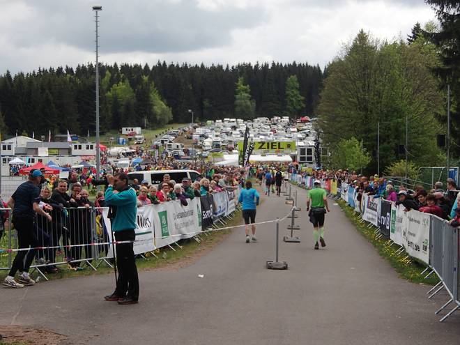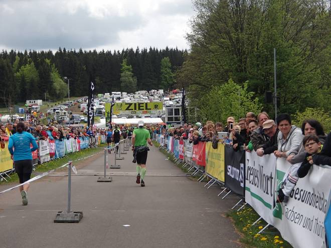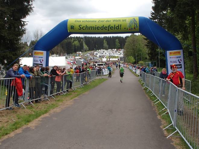 Schmiedefeld 14.42 Uhr / Km 73,3 Ob Schmiedefeld nun das schönste Ziel der Welt ist... Geschmackssache. Eines der stimmungsvollsten Ziele ist es auf jeden Fall. |