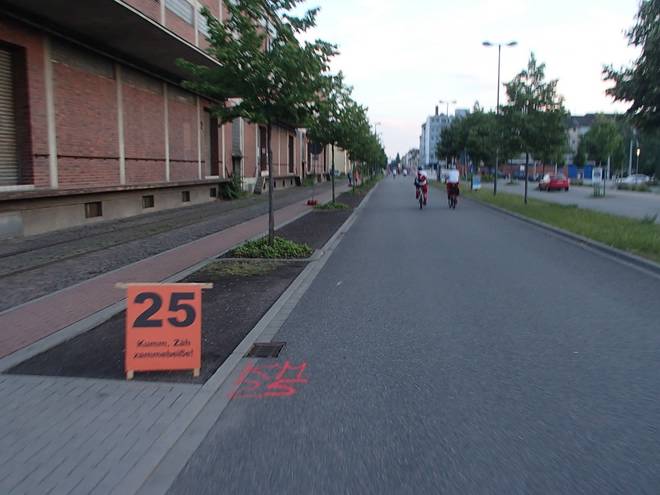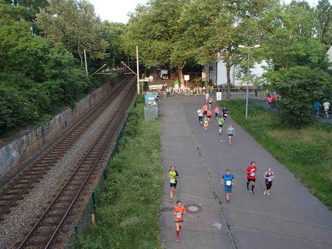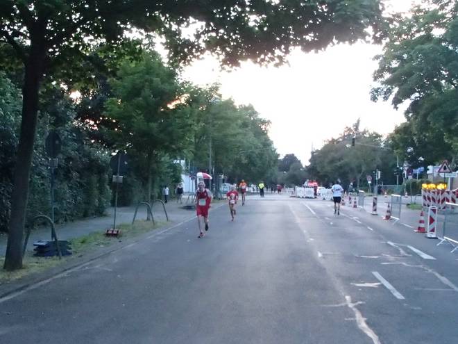 Rheinallee 21.26 Uhr / Km 25,5 Das war nicht die spannendste Ecke des Kurses. Ehe eine Großbaustelle. |